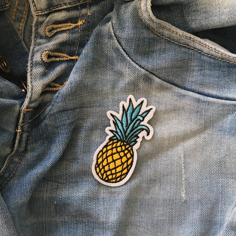 Ananas on 7 cm:n kokoinen kangasmerkki, jonka taustapuolella Iron-On-liimapinta. Se sopii täydellisesti somisteeksi vaatteisiin tai muihin kankaisiin, kuten puseron, housujen, laukun tai lippalakin koristeeksi. Merkki on myös oivallinen ratkaisu pienen reiän paikkaamiseen vaatteessa. Ananas-aiheinen merkki tuo vaatteisiin raikasta kesätunnelmaa. Kangasmerkin mukana tulee silitysopas, joka helpottaa merkin kiinnittämistä.