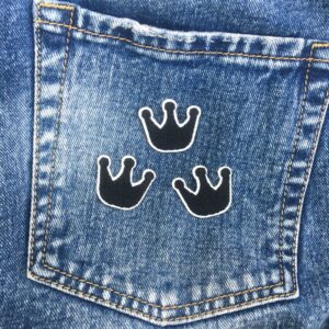 Kolme söpöä kruunua on saatavana väreissä: musta, jäänsininen, keltainen ja vaaleanpunainen. Kruunujen koko on 3,2 cm. Toimitetaan 3 kpl:n pakkauksessa. Kangasmerkit voidaan silittää kiinni vaatteisiin ja muihin kankaisiin.