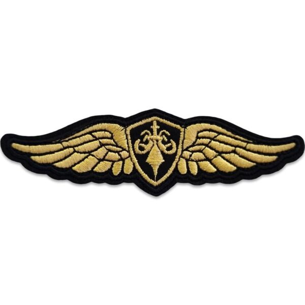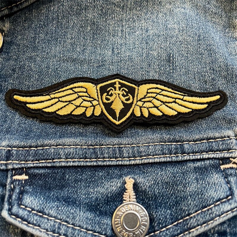 Kullatut siivet -kangasmerkki on upea kiinnisilitettävä kangasmerkki, jossa on Iron-On-liimapinta. Merkki on noin 11,1 x 3,2 cm:n kokoinen ja siinä on kultaiset siivet. Voit käyttää merkkiä, kun haluat uudistaa vanhoja vaatteita tai asusteita ja Kullatut siivet -kangasmerkki antaa niille persoonallisen ilmeen.. Tämä merkki on erityisesti ilmavoimista kiinnostuneiden suosikki. Pakkaukseen sisältyy silitysopas, jonka avulla merkin kiinnittäminen sujuu helposti.