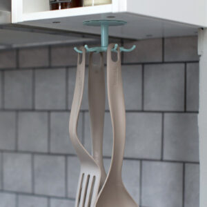 Älykäs kattokoukku, jonka avulla saat helposti järjestystä sinne, missä sitä tarvitaan. Kiinnitä itsekiinnittyvä levy keittiössä kaapin alle, vaatekaappiin tai siivouskaappiin – ja saat kuusi koukkua, jotka pyörivät 360°. Täydellinen keittiövälineille, avaimille, kaulakoruillesi, pienille pusseille tai muille tavaroille, jotka muuten helposti jäävät lojumaan.