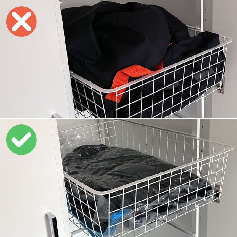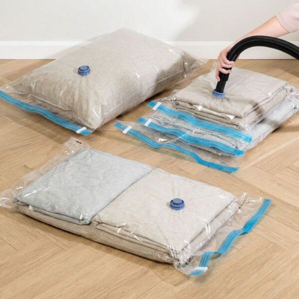 Jos sinun täytyy tehdä tilaa vaatekaappiisi, tyhjiöpussit voivat auttaa sinua vapauttamaan lisää tilaa. Lisäksi voit säilyttää vaatteita ja muita tekstiilejä kellarissa tai ullakolla, ilman että niihin tarttuu paha haju.