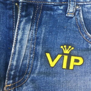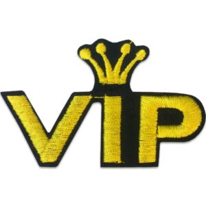 VIP kangasmerkki on upea brodeerattu kiinnisilitettävä kangasmerkki, jonka taustapuolella on Iron-On-liimapinta. Merkki on noin 7,1 x 4,5 cm kokoinen ja siinä on tekstin ”VIP” lisäksi kruunu. Kangasmerkki sopii täydellisesti vanhojen vaatteiden tai asusteiden somistamiseen tai vaatteen paikkaamiseen, jos siihen on tullut pieni reikä. Merkin voi myös kiinnittää esimerkiksi kassiin, lippikseen tai huiviin, jolloin se antaa niille uuden ilmeen. Mukana tulevien silitysohjeiden avulla merkin kiinnittäminen on helppoa.